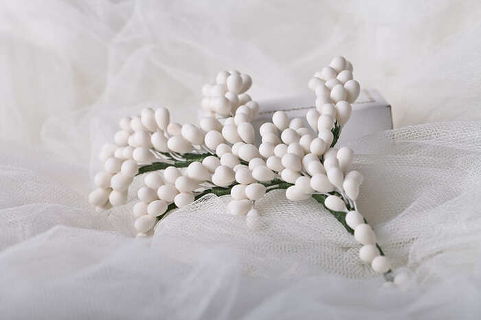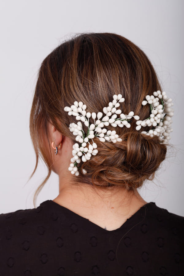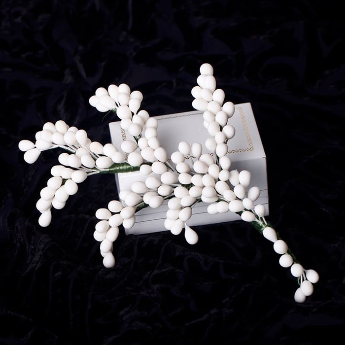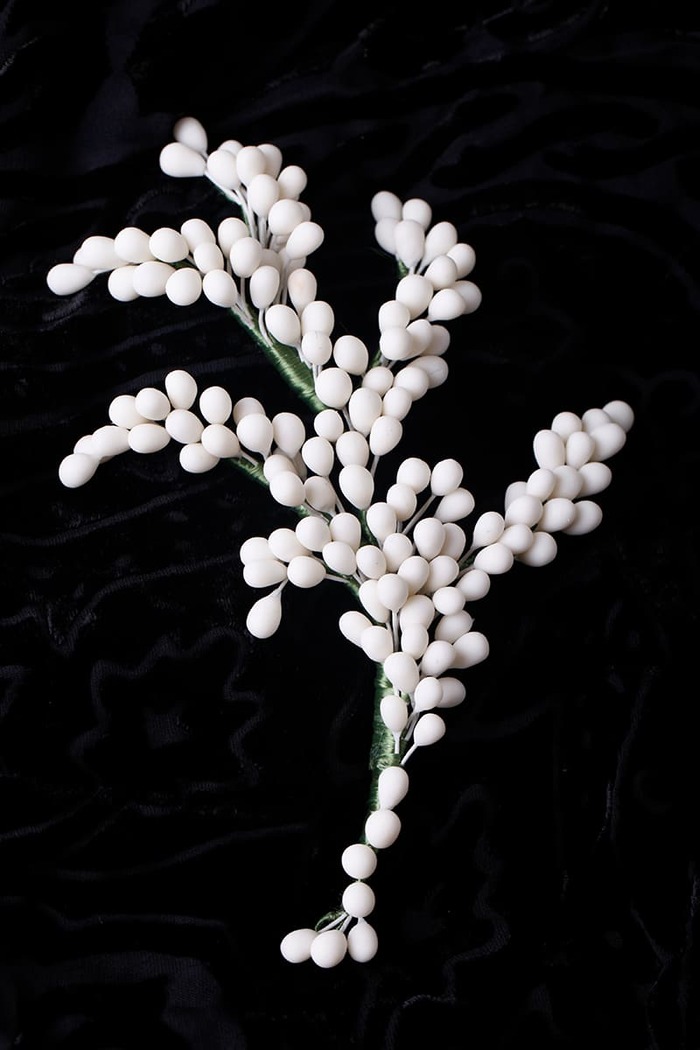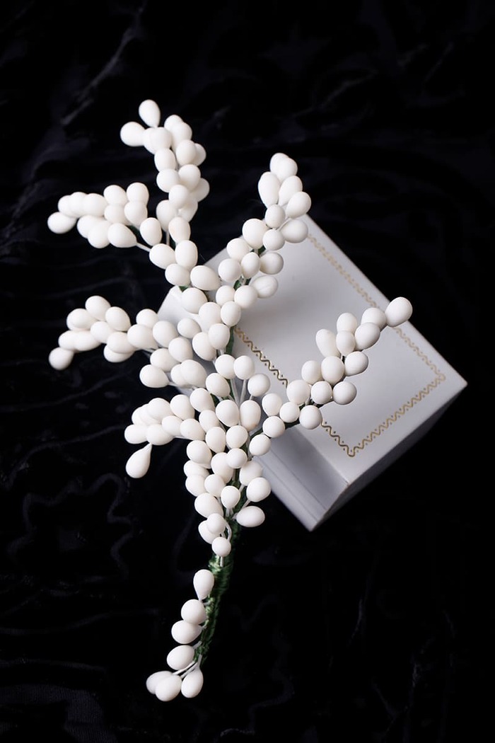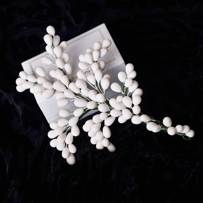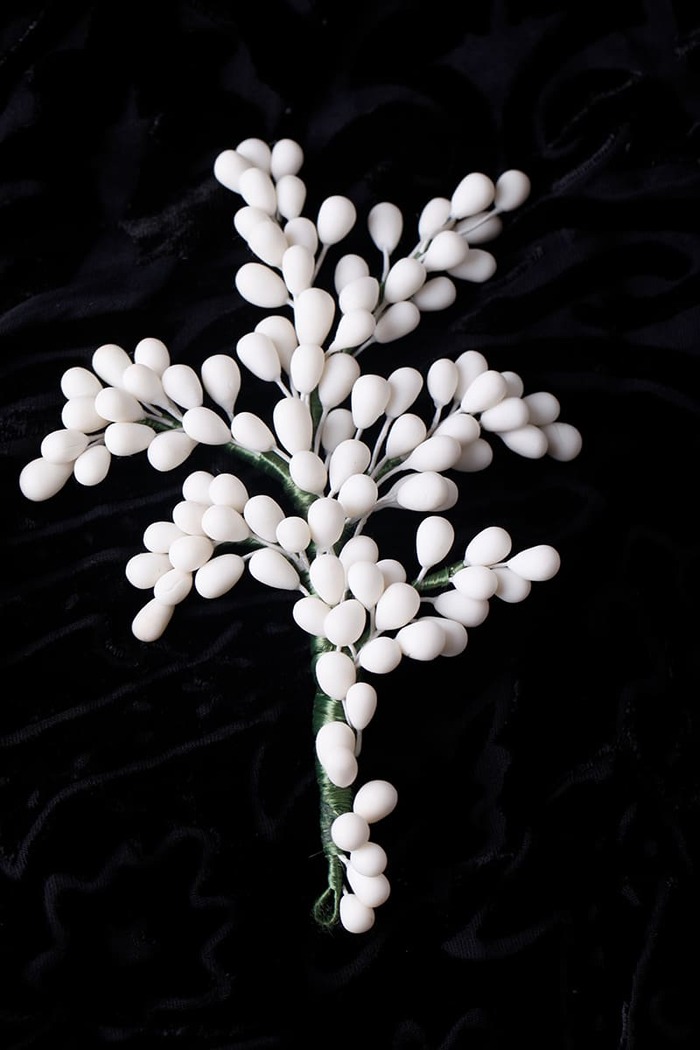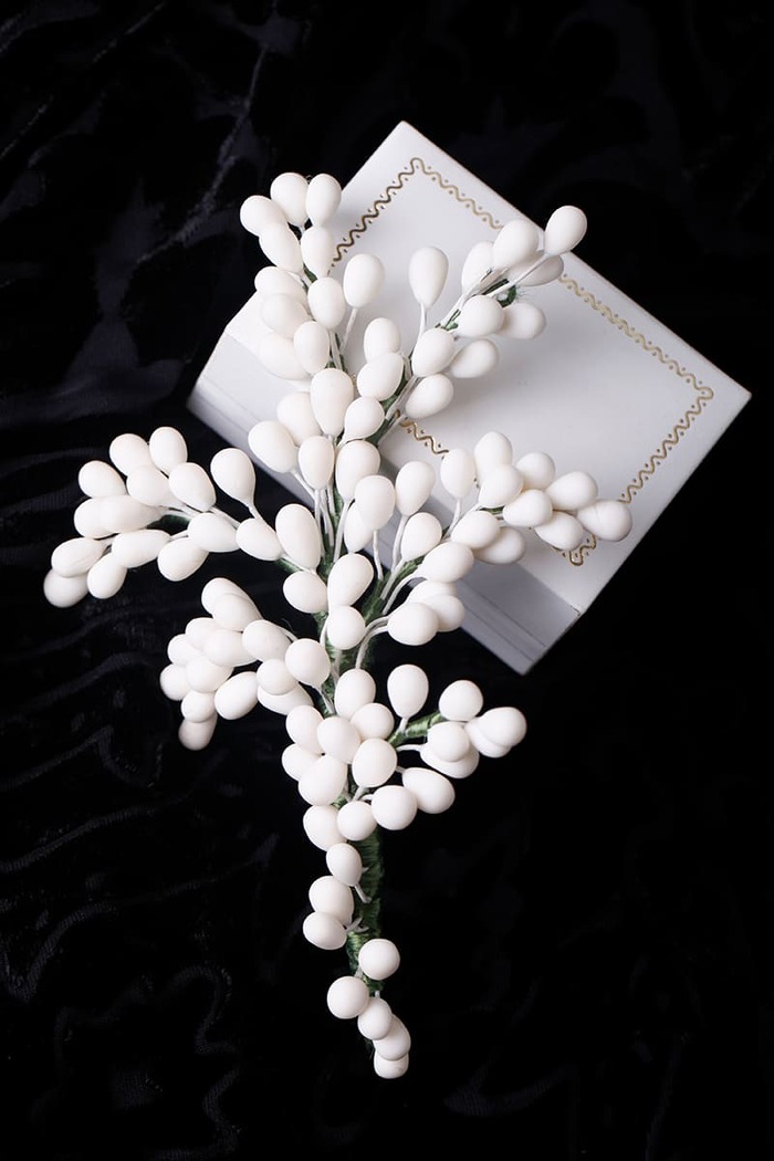 Tocado de lágrimas artesanales de porcelana fría en blanco. Tocado ideal para novias con posibilidad de combinar una o dos unidades.